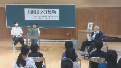 遠野北小学校の6年生の児童たちが今月5日、原爆体験者から話しを聞き平和について学習しました。その様子が届きましたのでお伝えします。この日、講師として招かれたのは、岩手県原爆被害者団体協議会・顧問の伊藤宣夫さんです。伊藤さんは、自身が広島で体験した原爆の恐ろしさや悲惨さ、当時の市街地の状況を児童たちに丁寧に話しました。また、講師の実体験を基にした紙芝居を代表の児童が読み、当時の様子を知るとともに戦争は絶対にしてはいけないことを子どもたちは改めて感じていました。今回の平和学習を通じて、平和とは何か、平和な世界を築いていくために自分たちにできることは何かを、児童一人一人が深く考える時間にしていた様子でした。最後に伊藤さんは、「命を大事にすること」「平和な世界をつくっていってほしいこと」「ほかの国と仲良くすること」「社会のために尽くしてほしいこと」を児童たちに伝えていたということです。