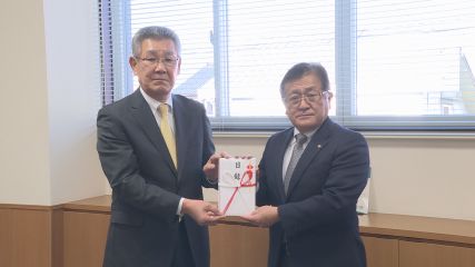 市内に工場を構える筑波ダイカスト工業が先週木曜日に遠野市に寄付金を贈りました。この日市役所とぴあ庁舎を訪れたのは筑波ダイカスト工業遠野工場の金野精一工場長と桐生剛総務付担当課長です。寄附採納式では金野工場長から多田市長に100万円分の目録が手渡されました。筑波ダイカスト工業は平成2年から毎年、遠野市に寄附を行っていて今回の寄附を合わせたこれまでの累計額は2,980万円となります。多田市長は「毎年ありがとうございます。企業支援による若者しごとサポート事業に活用させていただきます。」と感謝していました。Copyright(C) TonoCableTelevision. All rights reserved.