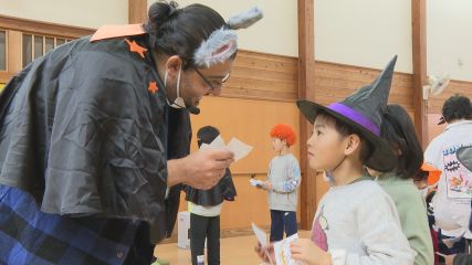 子どもたちに、楽しみながら英語に親しんでもらおうと「英語で遊ぼう!Englishキャラバン」が青笹児童館と達曽部児童クラブで行われました。その様子を 2本続けてお伝えします。Englishキャラバンは、グローバル人材の育成を目的に英語に対する興味や関心を高めてもらおうと遠野市からの委託を受け遠野市教育文化振興財団が実施しています。この日青笹児童館で講師を務めたのは、キャラバン隊メンバーでアルジェリア出身のビリーさん、そして谷渕眞理子さんです。この日は青笹児童館を利用している小学生およそ40人が、ハロウィンにちなんだ帽子やマントで仮装してカードにローマ字で名前を書き、英語で自己紹介しながらカードを交換する「ハロウィンカード交換」を行いました。児童たちはカード交換を通じて自分の名前のローマ字のつづりや、英語での自己紹介の仕方を楽しみながら学んでいました。続いて今週水曜日に達曽部児童クラブで行われたEnglishキャラバンの様子をお伝えします。この日も引き続きキャラバン隊メンバーのビリーさん、谷渕眞理子さんが講師を務め、達曽部児童クラブを利用している小学生15人と「きのこ」や「蝶」の折り紙に取り組みました。またこの日は、市内の団体で研修中のJICA海外協力隊員も参加し、子どもたちとの交流を楽しみました。児童たちは「折り紙」は英語でも「オリガミ」と発音することや、「折る」や「角」、「裏返す」など折り紙に使う英単語を学びながら好きな色の折り紙で楽しく作品を作っていました。なお遠野市教育文化振興財団では今後も児童館や児童クラブなどを巡回しながらEnglishキャラバンを開催していくということです。Copyright(C) TonoCableTelevision. All rights reserved.