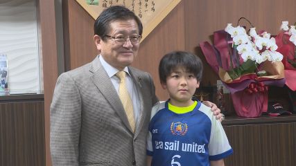 市内の少年サッカークラブに所属する小学生が、去年12月にスペインで開催された国際大会に出場し、その様子を市長に報告しました。この日、多田市長を表敬訪問したのはマリオヴィトーリアFCに所属する遠野北小学校の4年生菊池康介さんです。菊池さんは去年12月6日から2日間、スペイン・バルセロナで開催されたサッカーの国際大会「カイハンインターナショナルカップ」に出場しました。この国際大会に出場するメンバー12人は、全国6つの地区で実施されたセレクションを通った一握りの選手たちで、東北地区からは唯一、菊池さんが選出されました。この大会で菊池さんは、世界トップレベルのクラブチームに所属する体格の大きい選手や高い技術を持った選手たちと競り合う貴重な経験を積むことができたと振り返っていました。また試合を重ねていく中でスピードやキックの精度など自分自身の持ち味を発揮し、チームメンバーから信頼を勝ち取っていったそうです。報告を受けた多田市長は「すばらしい経験をしてきましたね。菊池さんは遠野の自慢です。これからも注目しています」と話し、今後の活躍に期待を寄せていました。Copyright(C) TonoCableTelevision. All rights reserved.