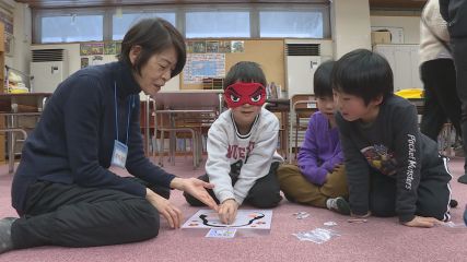 子どもたちに、楽しみながら英語に親しんでもらおうと「英語で遊ぼう!English・キャラバン」が先週金曜日小友児童クラブで行われました。English・キャラバンは、グローバル人材の育成を目的に英語に対する興味や関心を高めてもらおうと遠野市からの委託を受け遠野市教育文化振興財団が実施しています。この日講師を務めたのは、キャラバン隊メンバーのビリーさんと菅沼隆子さんです。今回は小友児童クラブを利用している小学1年生から3年生の9人が参加しました。はじめに講師と児童たちが英語で新年のあいさつを交わし、続いてお正月遊びの「福笑い」を英語を使って楽しみました。児童たちは「目」や「鼻」など顔の部分を表す英単語や上下左右を表す言葉を講師から教わったあと、英語を使った福笑いに挑戦しました。周りからのヒントに耳を傾けながら自分の感覚を頼りに顔のパーツを楽しそうに並べていきました。小友児童クラブの子どもたちは福笑いを楽しみながら英単語などを自然に学び、英語への親しみを深めている様子でした。なお遠野市教育文化振興財団では今後も児童館や児童クラブなどを巡回しながらEnglish・キャラバンを開催していくということです。Copyright(C) TonoCableTelevision. All rights reserved.