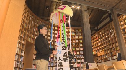 オープンから4年4カ月を迎えたこども本の森遠野の来館者が、今週日曜日に10万人を突破しました。令和3年7月に開館したこども本の森遠野は、世界的な建築家である安藤忠雄さんが遠野市に寄贈した建物で、施設内には絵本や図鑑などおよそ1万3,500冊の本が蔵書されています。年間を通じて県内外から多くの人が訪れる中、今週7日・日曜日の午前9時40分ごろ来館者10万人を達成しました。記念すべき10万人目は宮城県亘理町から初めて遠野を訪れた千葉文彦さんと美貴さん夫婦です。記念セレモニーでは、「10」と書かれたくす玉が2人の手で割られました。多田市長は記念品を手渡したあと、「ご来館いただきありがとうございます。ぜひ何度も来て楽しんでいただきたいです」と話し、来場10万人達成を祝いました。なお、こども本の森遠野の長谷川浩館長は、「子どもだけでなく大人も含めた幅広い年代の人に楽しんでもらえる施設であり続けたい」と、話していました。