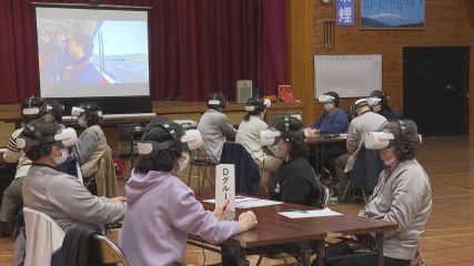 福祉の専門職を対象に最新のVR技術を活用して認知症のある人が感じている不安や戸惑いを学ぶ研修会が先週水曜日総合福祉センターで開かれました。この研修会は何気ない行動が認知症の人にどれだけ恐怖や不安を与えているかVRで疑似体験し、さらに寄り添った支援ができるよう遠野市社会福祉協議会が開きました。研修会には市内の福祉事業所からおよそ50人が参加しました。この日は講師に千葉県を中心に高齢者向け住宅の運営や認知症の人に向けたVRコンテンツの企画・開発を行っているシルバーウッドの大野彩子さんを迎え、認知症の人が周りの人にどのような接し方を望んでいるか、また安心して暮らすために必要な社会について学びました。研修では距離感がつかみにくくなる症状や本来は存在しないものが見える幻視の症状など、認知症の人に起こる症状をVRで疑似体験しました。そして3人から5人のグループに分かれ「周りの人にどう接してほしかったか」意見を交わしました。参加した人たちは疑似体験を通して認知症の人とのこれまでの関わり方を振り返り、今後の支援に生かす手がかりを得ていた様子でした。また大野さんは目の前にいる人の状況を理解して寄り添う姿勢の大切さを強調。参加した人たちはうなずきながら話に聞き入っていました。今回の研修を通して参加した人たちは認知症の人に「寄り添う」ことの重要性を改めて認識していた様子でした。